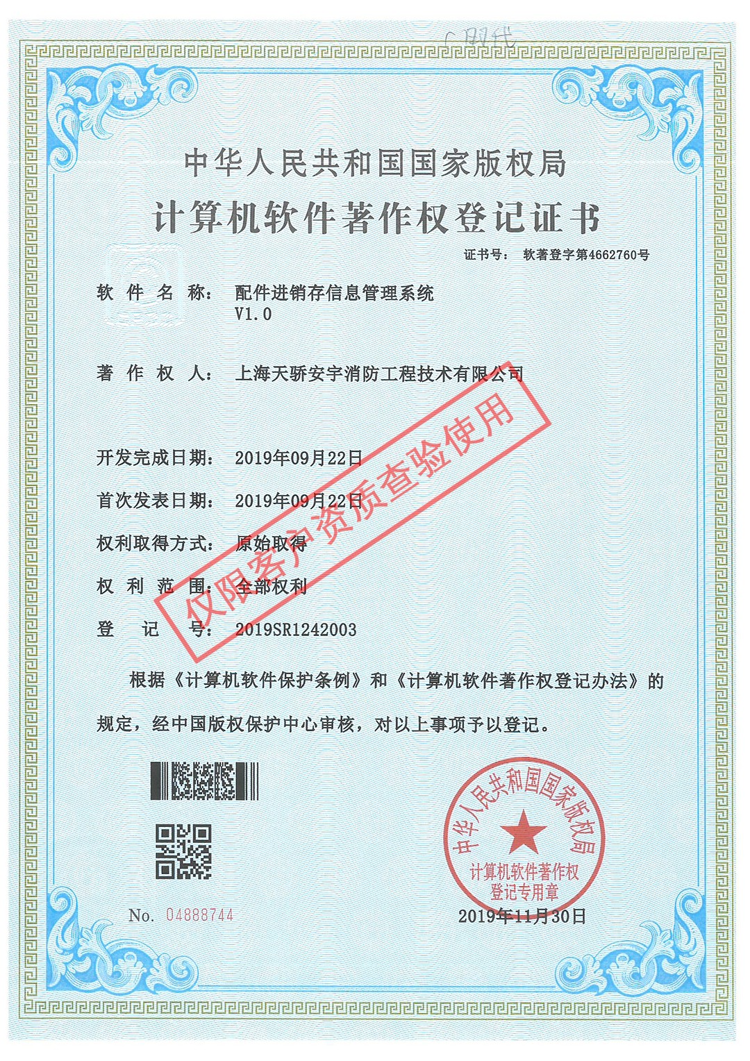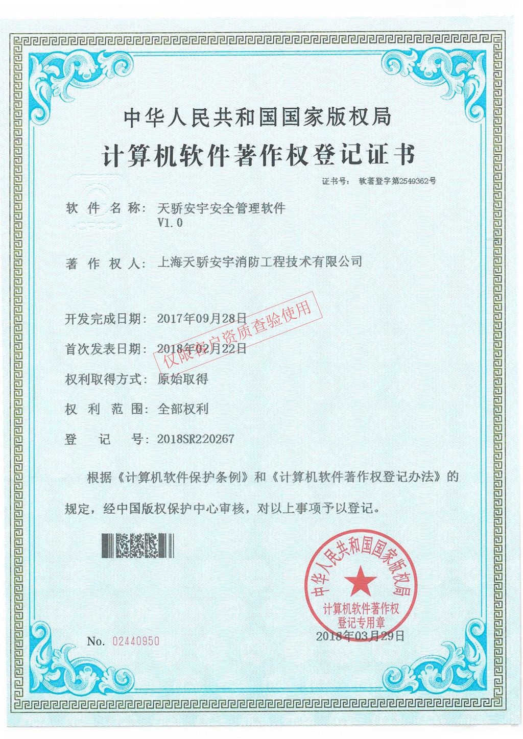 軟件著作權(quán)證書